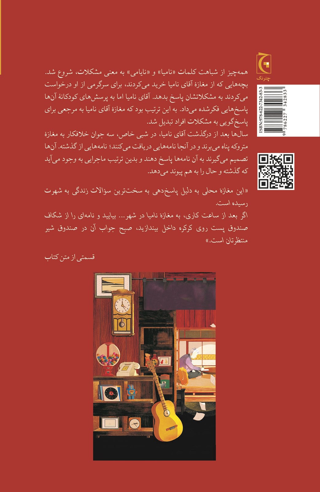 معجزات مغازۀ نامیا را سعیده قاسمیان به فارسی برگردانده و نشر چترنگ آن را در ۳۸۴ صفحه منتشر کرده است.